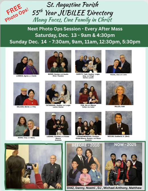 As we gather with family and friends this Thanksgiving, my heart is filled with gratitude for each of you - the faithful Parishioners of Saint Augustine Church. You make our parish a living witness to God's love. Your prayers, yours service and your generosity are the blessings that sustain the vibrancy of our community.