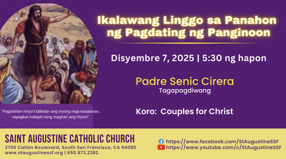 1st Sunday 5:30 pm Tagalog (Filipino) Mass Livestreamed via and YouTube