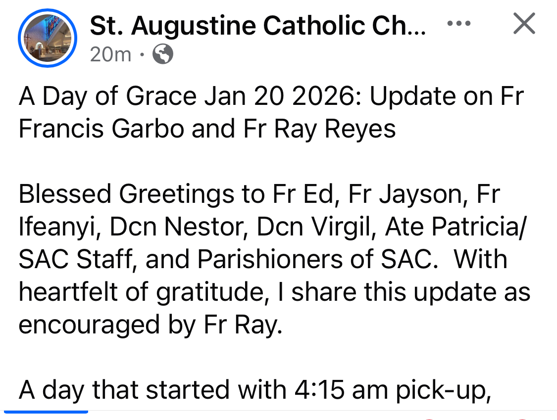 Sent by Fr. Ray Reyes on Wednesday, January 21 at 10:32AM