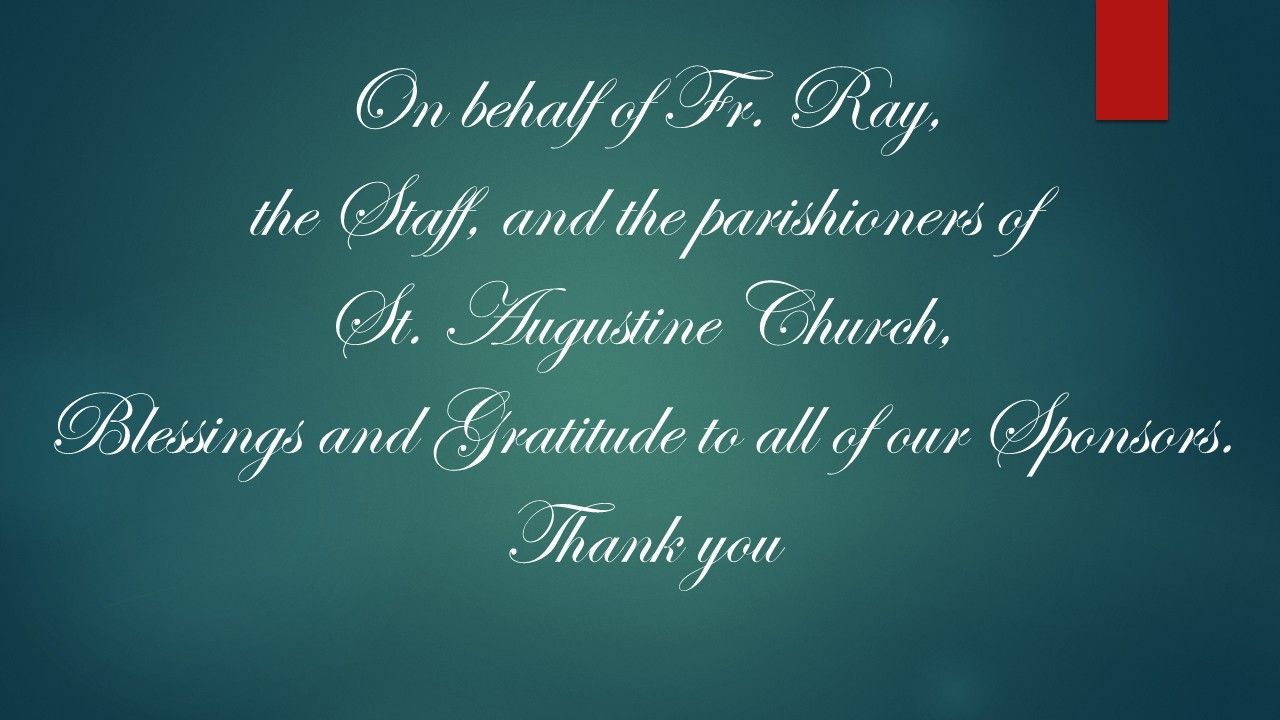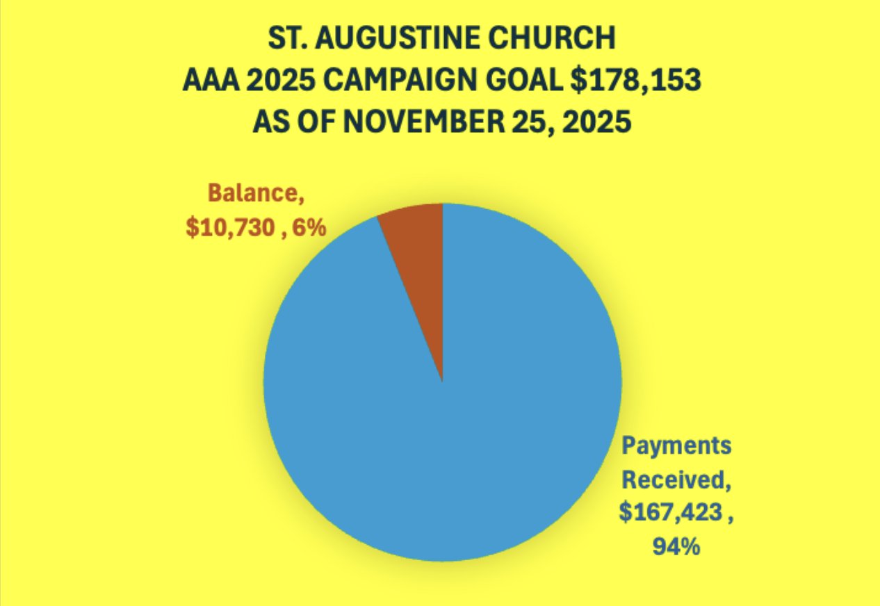As we gather with family and friends this Thanksgiving, my heart is filled with gratitude for each of you - the faithful Parishioners of Saint Augustine Church. You make our parish a living witness to God's love. Your prayers, yours service and your generosity are the blessings that sustain the vibrancy of our community.