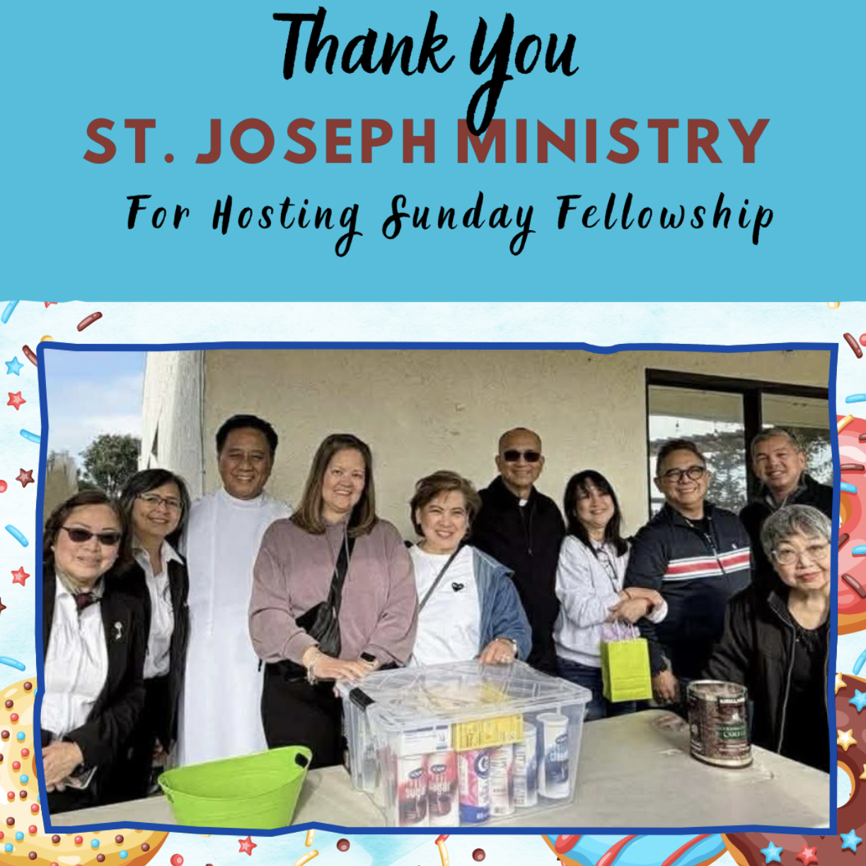 We thank the members of the St. Joseph's Ministry for hosting last week's Hospitality Sunday.