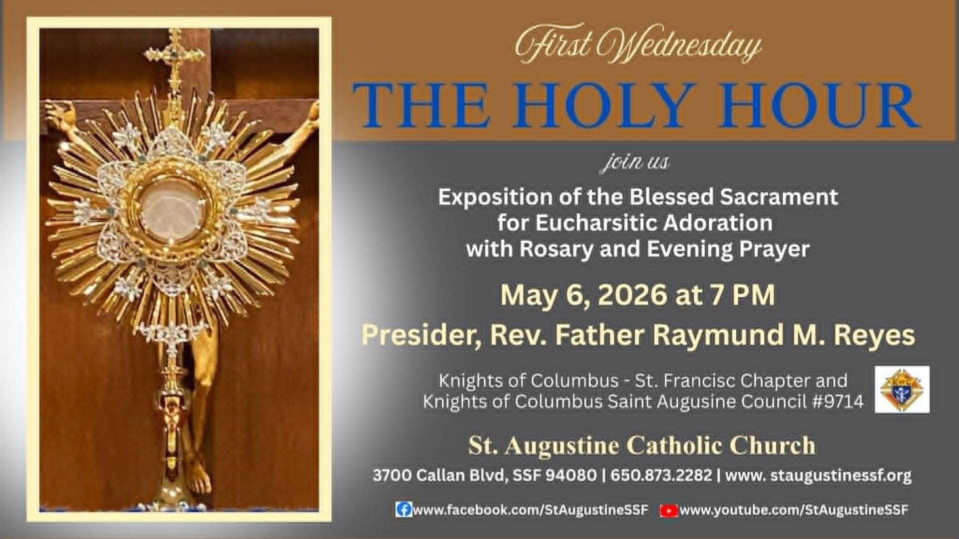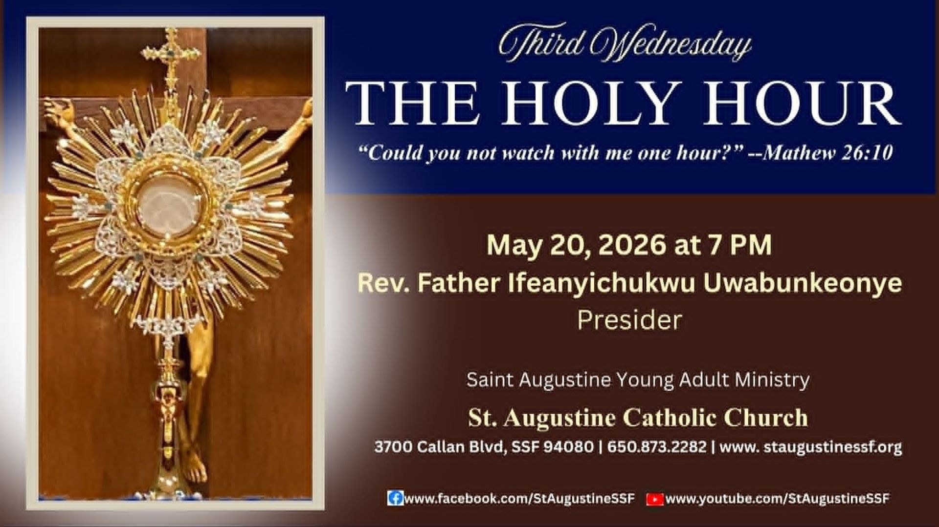 - Parish Holy Hour every 3rd Wednesday from 7:00 pm to 8:00 pm sponsored by the St. Augustine Youth Group & Young Adults